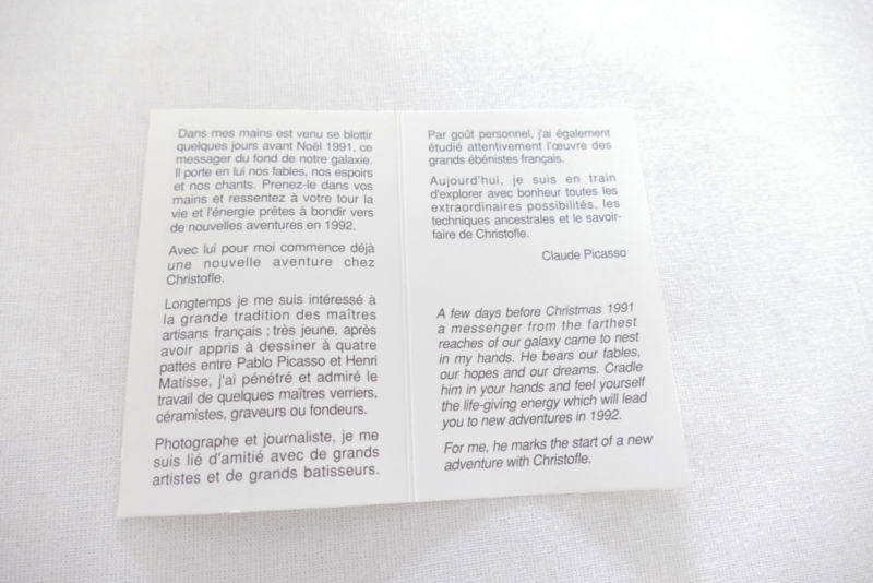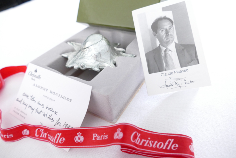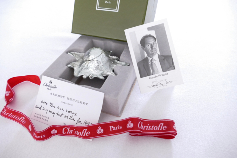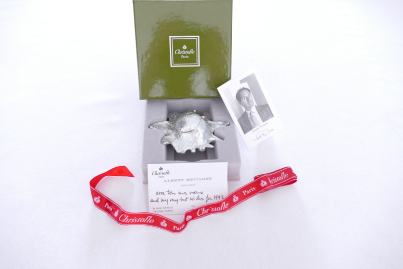 Het stuk komt in haar originele bewaardoos met lint, boekje en visitekaartje van Christofle.