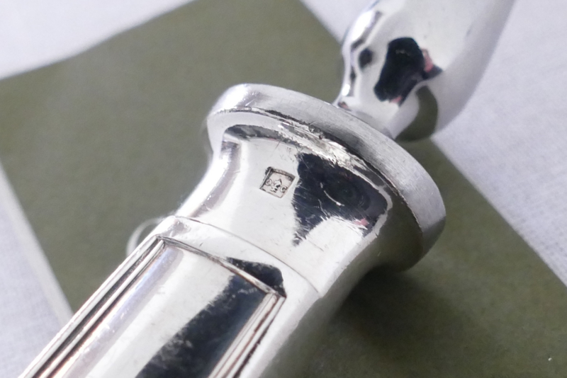 Gemerkt met de Christofle keur op het handvat: [O-Schaakstuk-C]. Het roestvrijstalen deel tevens gemerkt Christofle France.