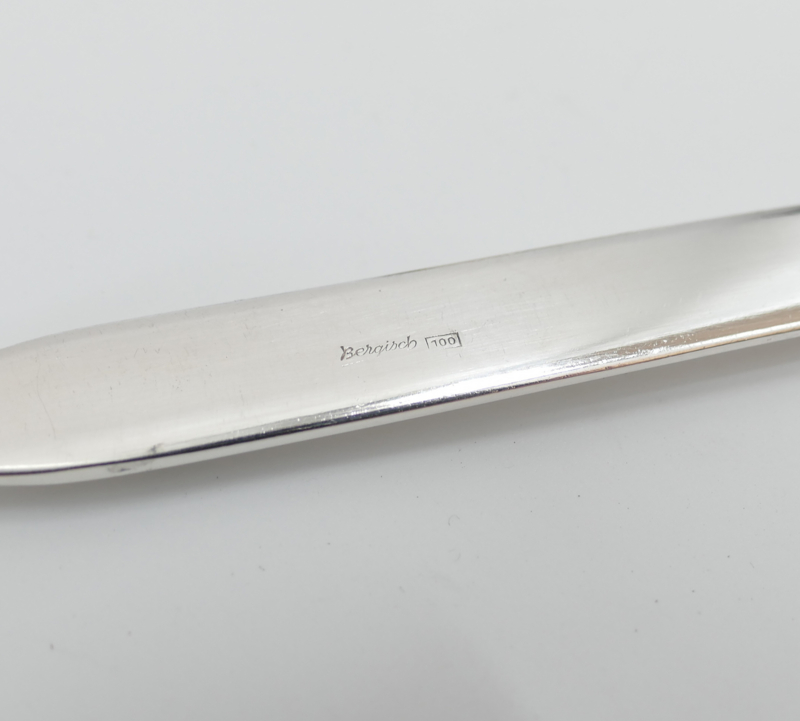 Gemerkt aan de achterzijde van de stelen met [Bergisch][100]. De lemetten van de messen gemerkt met "Bergisch Solingen Rostfrei".