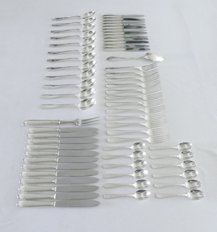 Silver-plated Art Deco Cutlery Set - 62-piece/12-pax. - Orfevrerie J. Brille - France, 1920-1930